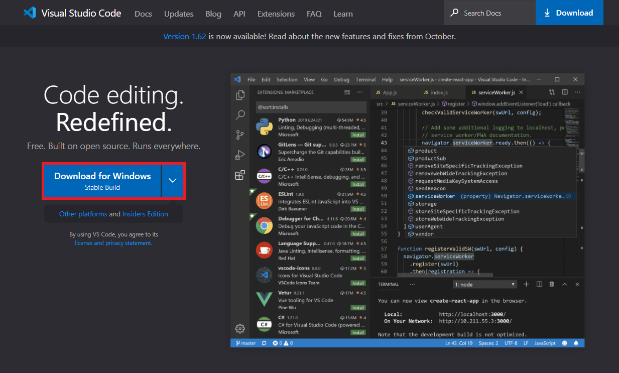 - 비주얼 스튜디오 코드 다운로드 : https://code.visualstudio.com/