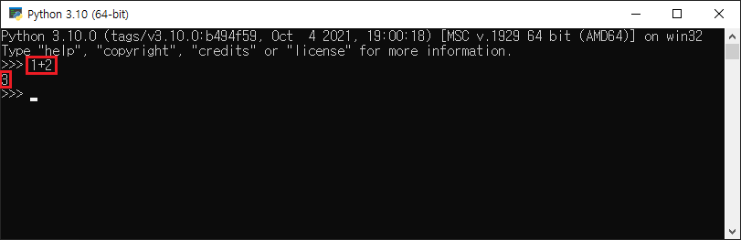 파이썬 인터렉티브 쉘에서는 코드 한줄을 입력하면 ( print() 를 사용하지 않더라도 ) 곧바로 실행결과를 볼 수 있어서 실습하기가 편합니다. 반면에 여러 줄에 걸쳐서 데이터를 처리하고 싶다면 비주얼 스튜디오 코드에서 하는 것이 좋습니다.